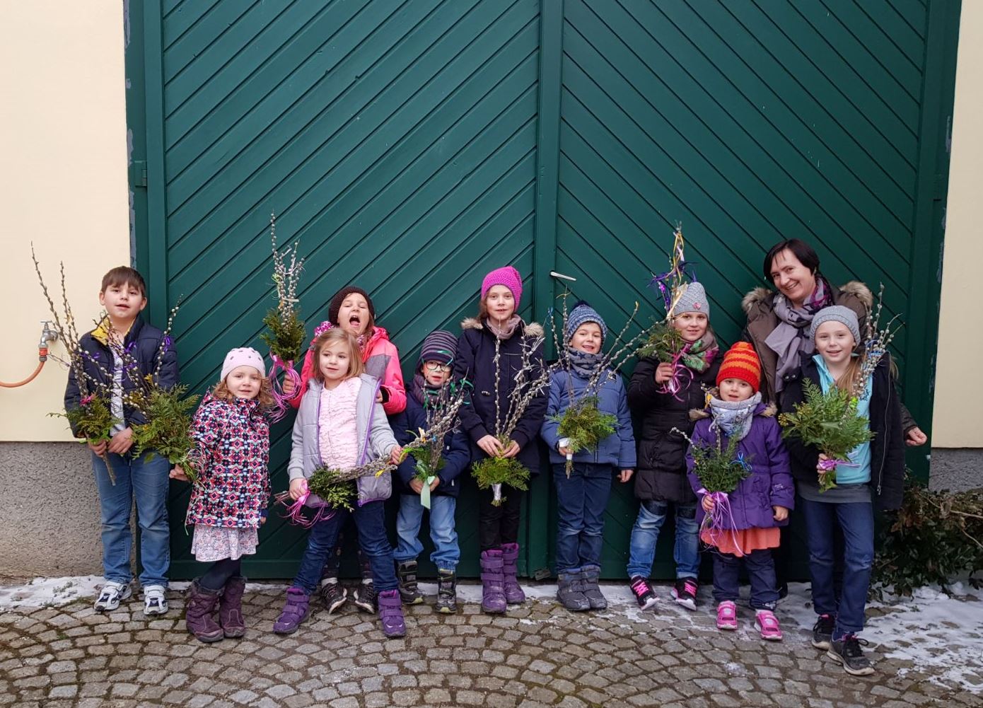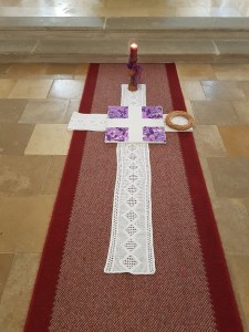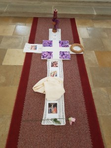 wurde von den Kindern ein Dornenkranz zu einem Kreuz am Boden gelegt.