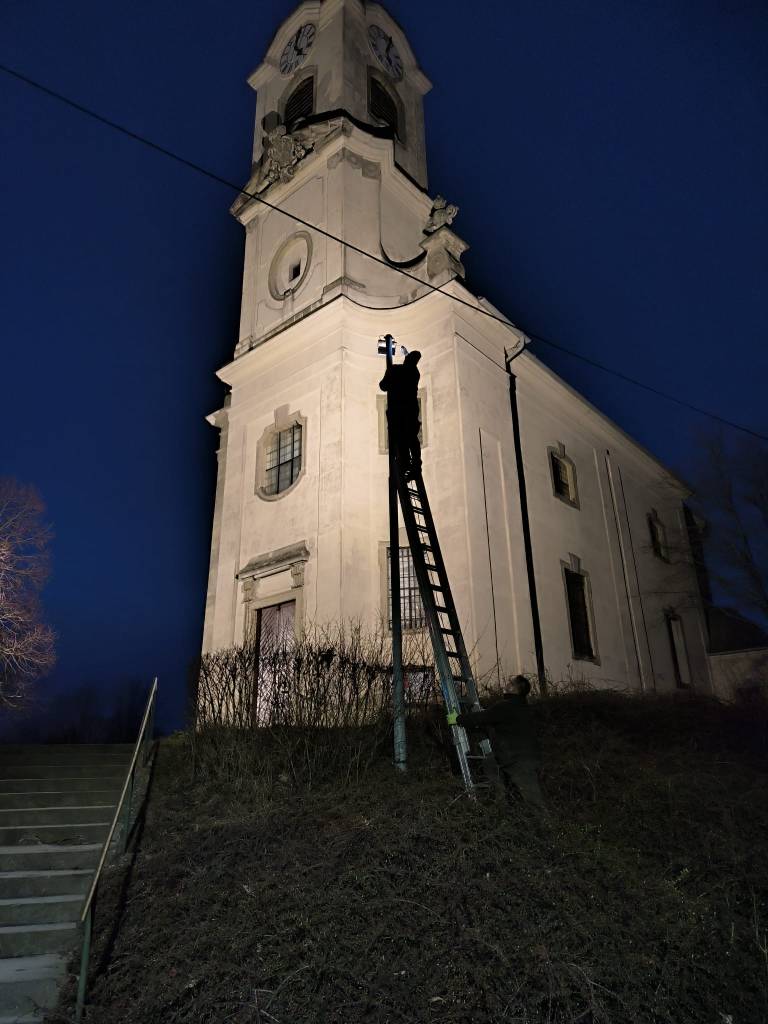 Montage der Kirchenbeleuchtung, Jänner 2025